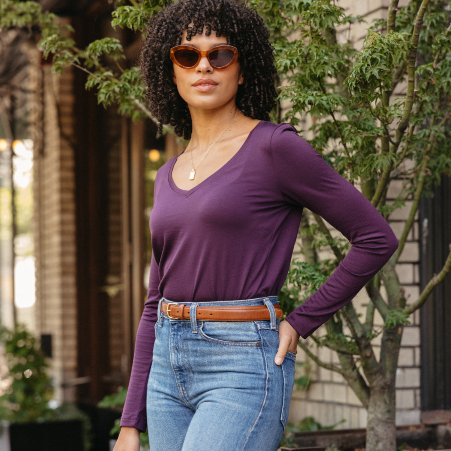 • Long-sleeve version of the Morgan V-Neck Tee