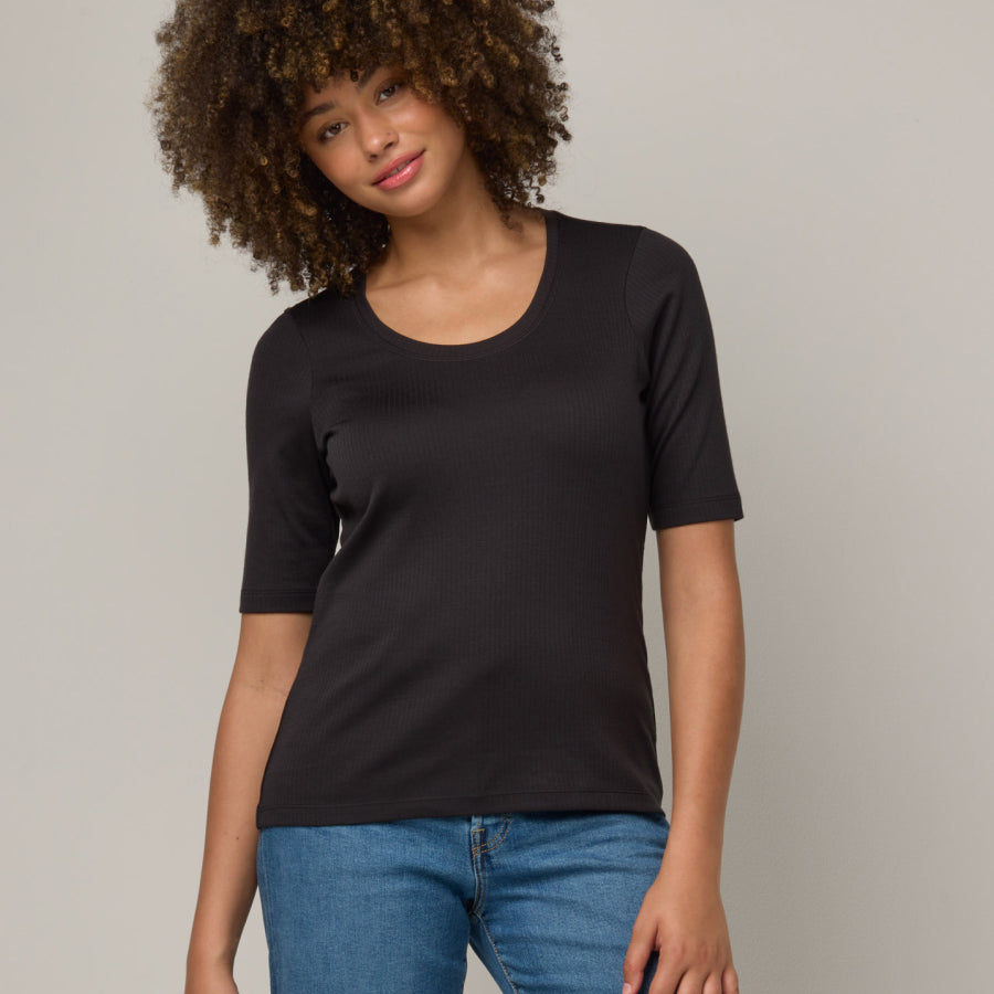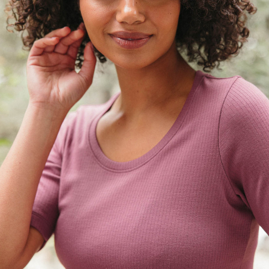 Sizing Tip: The Celine Elbow Sleeve Tee is slim fit. Fits close to the body but is not tight. Hugs in all the right places for optimal layering.