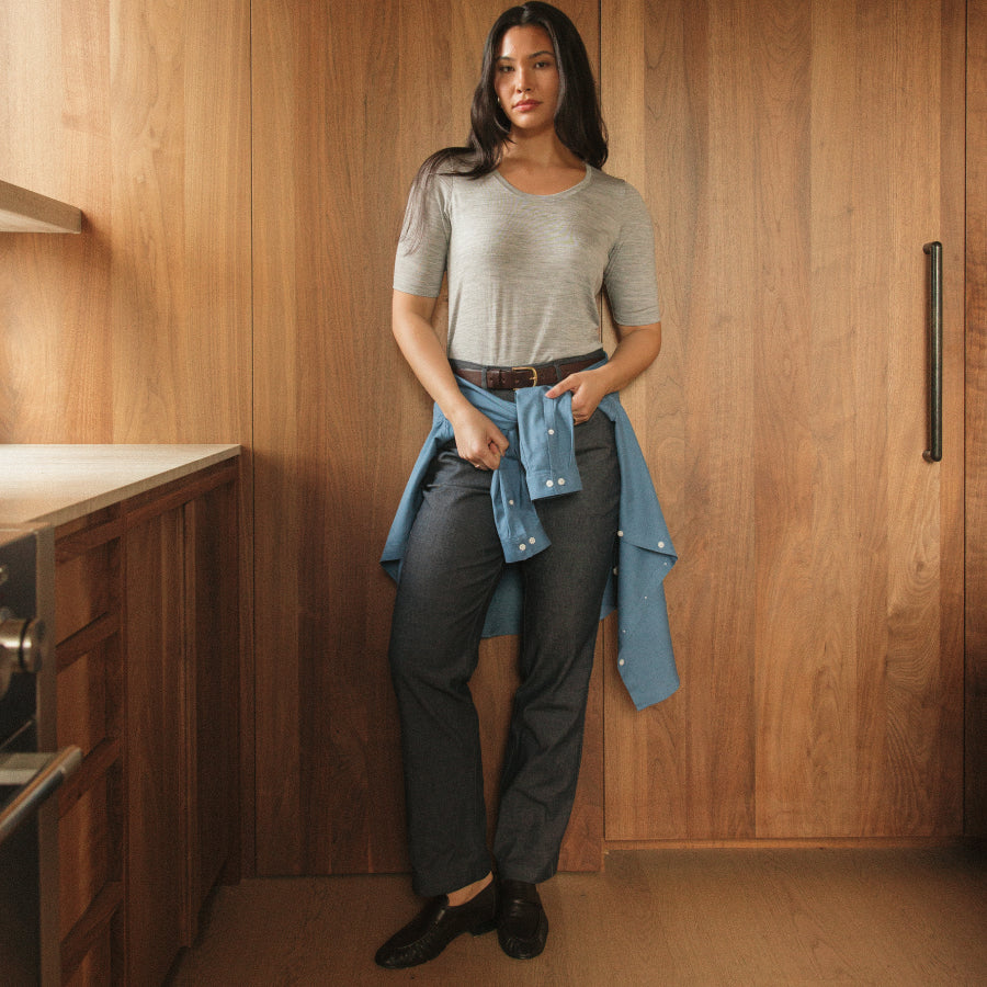 Our merino denim stays smooth against the skin and softens with every wash.
