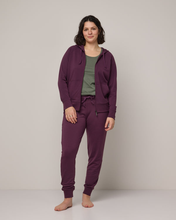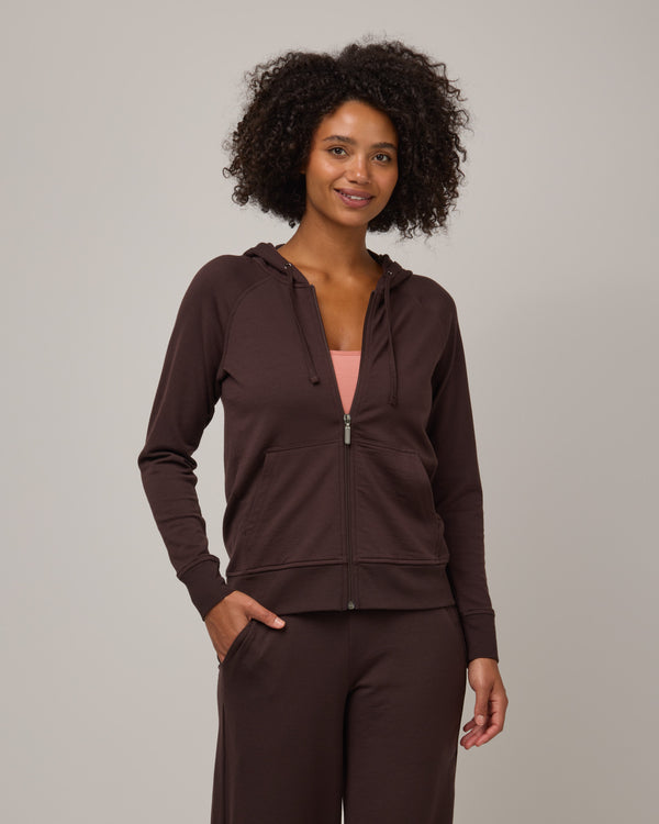 Midweight knit with a smooth outside and plush loops on the inside, like your softest sweatshirt. 75% merino wool, 22% nylon, 3% spandex. 235 gsm.
