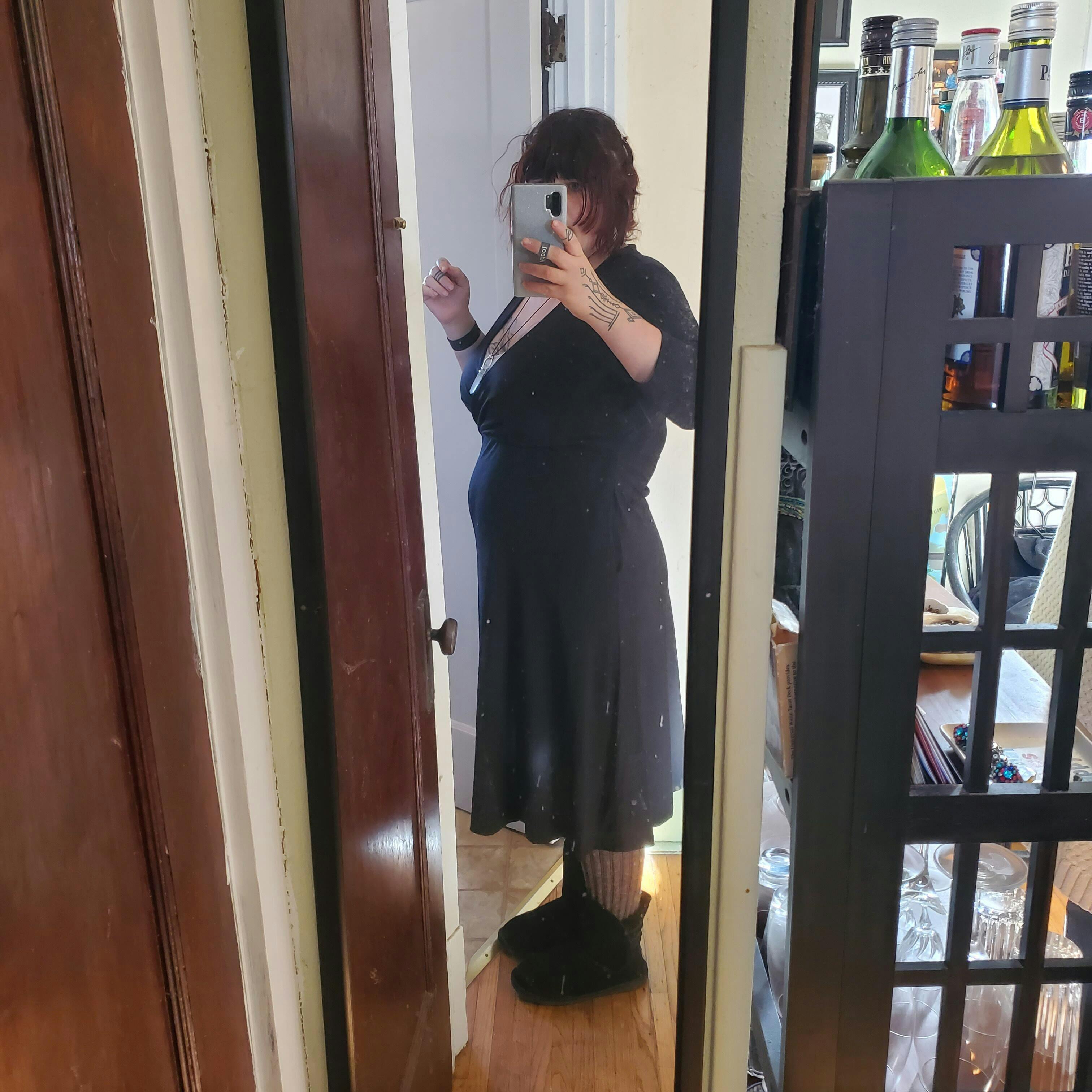 I don't love layering stuff underneath this dress as it tends towards cling, and because it's a little large it hasn't been great for layering stuff on top either. I'm also breastfeeding so I need the neckline to stay low.