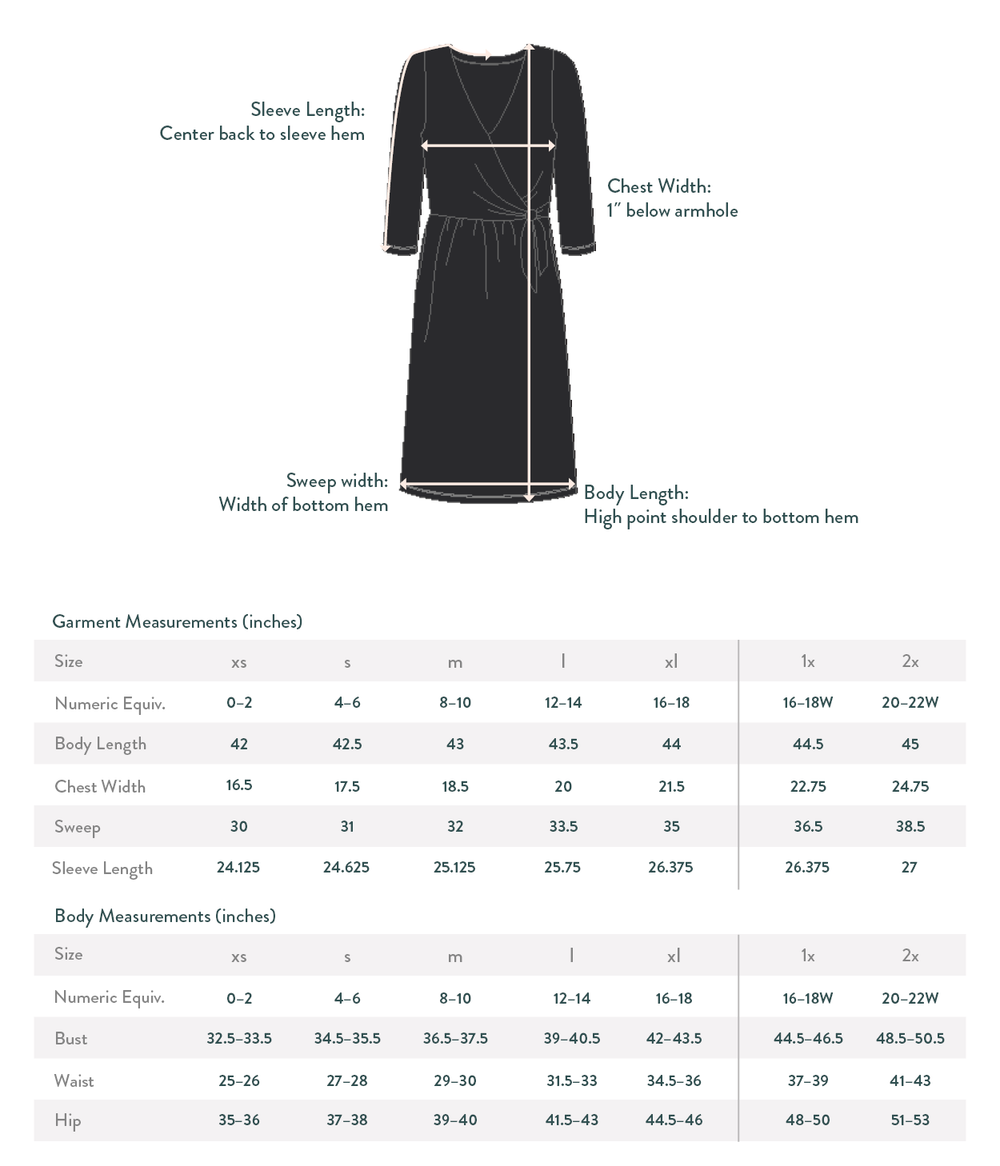 I love the richness of the pine color, soft breathable fabric, and easy elegance of this dress. I am 5’ 0” tall (measurements 35/32/38 inches). The small fit well for sleeve length and waist circumference. However the neckline plunged too low for daily activities and gapped significantly even with a slip underneath. In addition, the waist placement fell an inch or so too low on me, causing the fabric to drape in an unflattering way over my midsection. I wish this dress came in petite proportions. In lieu of that, I decided to have my dress altered to raise the waist and add a snap to the neckline.