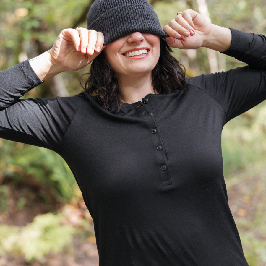 Sizing Tip: The Wallis Henley Tee is slim fit. Fits close to the body but is not tight. Hugs in all the right places for optimal layering.