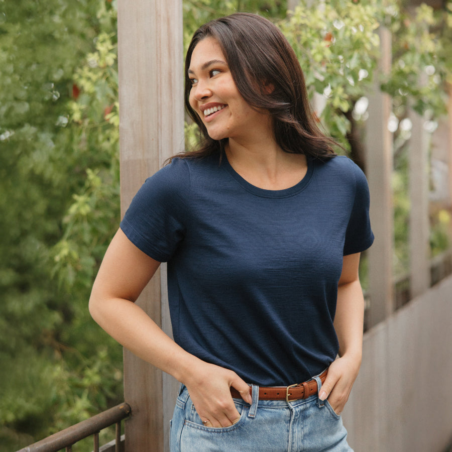 Our merino tees blend softness, polish, and performance—so you can pack light, layer smart, and still look pulled together, wear after wear.